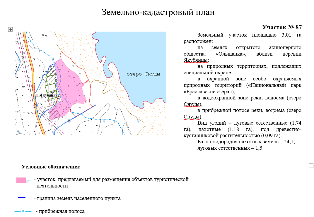 Для размещения объектов туристической сферы на озере Снуды